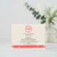 Um convite de casamento de um monograma inspirado em vintage, com um esquema de cor vermelha desbotada e texto preto. Quadro de dentro de monograma no topo. A redação é de noiva e noivo junto com seus pais.