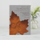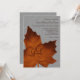 Um grande monograma sutil de laranja, folha de bordo, em um fundo de linho ilustrado, decora este convite de casamento cinza. É mostrado no papel matte; no entanto, eu recomendo o peso e a textura do papel de linho, para melhorar a aparência.