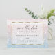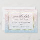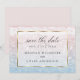 Salve a Data | Deslumbrantes águas oceânicas cintilantes brilhando ao pôr do sol - em tons pálidos de rosa poeira e azul poeira - o texto aparece em uma moldura branca translúcida com borda dourada cintilante que mostra o design, mas permite que o texto seja facilmente lido. Acentuado com caligrafia manuscrita elegante e bonita. Modelo de casamento fácil de personalizar.