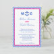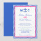 Este convite moderno é ideal para celebrar um casamento com um tema náutico. Ele apresenta uma âncora no centro com as iniciais da noiva e do noivo em cada lado. Uma sólida borda de listras cor-de-rosa e azuis dá-lhe um impacto visual para uma aparência elegante mas ousada. Excelente para um casal na moda. Entre em contato com "marlenedesigner" se quiser uma alteração de texto ou de cor neste design.