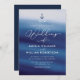 design do tema do casamento do mar azul com uma elegante letra de escrita branca. O texto preto e outros recursos deste modelo de convite de casamento podem ser personalizados.