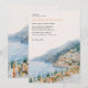 Convide seus convidados para celebrar seu amor com este elegante design de casamento no destino da Costa Amalfitana. Com uma ilustração em aquarela suave de uma mesa de recepção à beira-mar e uma vila na encosta da colina, este convite captura a romance de uma celebração costeira italiana.