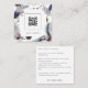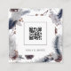 Seus amigos e família vão adorar este convite de casamento moderno onde eles podem digitalizar o código para seu site de casamento. Eles podem RSVP on-line, assistir suas atualizações, ver em que lojas você está registrado e seguir seus preparativos de casamento. Na frente, você adicionará o código QR que está vinculado ao site do seu casamento. Você deve substituir o exemplo mostrado pelo seu código específico. Você pode obter seu código QR gratuitamente on-line ou entrar em contato com o provedor do site do casamento para obter seu URL exclusivo. Abaixo do seu código, você adicionará seus nomes. É melhor usar todos os bonés e apenas nomes próprios. Ao contrário, você adicionará uma breve mensagem pessoal e explicará o que eles precisam fazer. Use o texto de exemplo para orientá-lo. Diga aos seus hóspedes para digitalizar o código e dar ao pessoas o seu endereço no site de casamento também. Não há necessidade de enviar cartões RSVP; eles podem fazer isso on-line. Esteja ciente de que estes são do tamanho de um cartão de visita, não do tamanho de um convite padrão. As imagens de aquarela são ideais para um casamento no inverno. Em tons de blues e cinza, ele tem uma sensação botânica invertida.