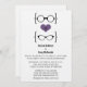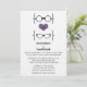 Convite de Casamento Óculos Geek extravagante e chique, apresentando um coração roxo ladeado por dois pares de óculos geek, um par masculino e um par feminino representando o noivo e a noiva. Este convite sofisticado e fora do comum é perfeito para o seu casamento nerd! Fácil de personalizar, basta adicionar os detalhes do seu grande dia nos campos de texto fornecidos. Clique no botão "Personalize" para encontrar opções adicionais de personalização.