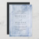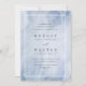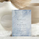 O convite para casamento moderno e chic inspirado em gemstones opais apresenta um fundo de aquarela azul pastel com uma borda dupla branca e seus detalhes de casamento em elegante cartaz fora do preto.