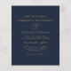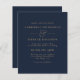 Este convite de casamento elegante apresenta um design moderno e sofisticado. O convite azul-marinho escuro apresenta uma tipografia dourada moderna para personalizar seus detalhes importantes, como nome da noiva e do noivo, data do casamento, local e monograma.