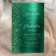 A borda esquerda deste convite de casamento moderno e elegante apresenta uma falsa borda brilhante esmeralda verde. O texto personalizável combina fontes de letra manuscrita branca e sem serifa em um fundo de metal cinzelado verde. O verso apresenta um design correspondente de brilho verde e metal cinzelado.