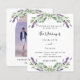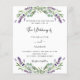 Um fundo branco decorado com flores de lavanda e folhagens de eucalipto. Personalize e seus nomes e detalhes.