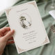 Celebre seu dia especial com este elegante convite de casamento vintage francês, apresentando uma delicada ilustração de uma garça inserida em uma moldura oval ornamentada. Inspirado no estilo clássico da França rural, este design combina tipografia atemporal com detalhes suaves e românticos para um visual refinado e sofisticado.