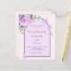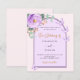 Um fundo cor-de-rosa pincelado com arco de cor violeta, lavanda e roxo. Decorados com um verde floral, rosa, de cor aquosa, de cor verde, de eucalipto verde e borboletas. Personalize e adicione seus nomes e detalhes. 1 folha = 1 convite impresso de borda a borda.