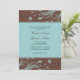 Este convite clássico apresenta espirais florais de chocolate castanho e azul-lacrimogêneo com uma margem de renda simples para uma área para informação de convite. Este belo e elegante convite de casamento é excelente de casamentos com cores castanhas e lacrimogêneas para um sentimento romântico. Procure por RSVP correspondente no meu compro!