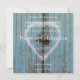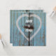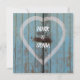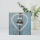 Um velho convite de casamento à porta rustica. A porta como tinta azul esfolada antiga confiava trava de metal. Um coração branco macio forma o centro desta design de casamento. O design tem a noiva e o nome do noivo em letras de pincel. Se você quiser ajuda para personalizar este design, use o botão para solicitar a este designer um botão, imediatamente abaixo deste texto.