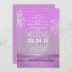 Palm Trees, Convite De Casamento Do Mar Das Ondas De Praia. Bonito elegante e simples com fontes manuscritas e fundo de papel roxo