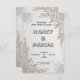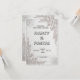 Um convite sofisticado para casamento de cinzas, com elementos botânicos elegantes e modernos, com folhas de prata brancas ou metálicas intrincadas ou filmes de galho delicadamente espalhados por um fundo de cinza suave e suave, evocando um senso de serenidade calma e refinamento natural, com textura sutil e sombreamento suave para criar profundidade e interesse visual, e um layout limpo e minimalista que expele moderna sofisticação .