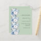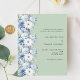 Um fundo verde claro, decorado com flores azuis empoeiradas e brancas. Personalize e adicione seus nomes e detalhes. 1 folha = 1 convite impresso de borda a borda.