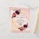 Um cartão postal de casamento romântico e glamouroso. Um quadro geométrico dourado falso com penas e flores de cor aquosa em ouro borrado, rosa e rosa. Um fundo rosa dourado com gradiente de pinos de pincel, decorado com bandas de brilho de falso rosa dourado. Personalize e adicione seus nomes e detalhes do casamento. Ouros. Os nomes são escritos com um moderno estilo escrito à mão. Traseira: Rosa dourado, fundo cor-de-rosa pincelado.