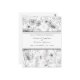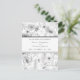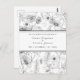 Um cartão postal de convite para casamento simples e elegante, com arte moderna em linha. O padrão de flores brancas e pretas desenhado à mão de margaridas, rosas e samambaias.