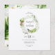 Delicado convite para casamento de coroa floral tropical. Os tons suaves adicionam uma elegância calma a esta suíte de casamento.
