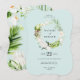Delicado convite para casamento de coroa floral tropical. Os tons suaves adicionam uma elegância calma a esta suíte de casamento.