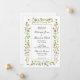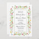 Lindo convite de casamento em aquarela emoldurado por um delicado arranjo de flores silvestres coloridas.