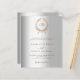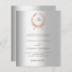 Um fundo de olhar mal prateado. Uma coroa de ouro rosa. Personalize e adicione suas iniciais, nomes e detalhes do monograma. Rosa dourado. 1 folha = 1 convite impresso de borda a borda.