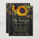 Celebração de casamento na Rússia e na moda de recepção barato convite para modelo no fundo de madeira marrom-escura apresentando grandes buquês de girassol de ouro amarelo, cordas de luzes cintilantes e um falso roteiro de tipografia de ouro. +++++++ Se precisar de ENVELOPES, selecione a opção ENVELOPE! ++++++++++ Fácil de personalizar com seus detalhes! +++++++++++ O convite é adequado para casamentos de campo rústico em quintais exteriores.