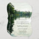 Esta carta de convite para o casamento de reflexão do lago de montanha, criada da minha fotografia pessoal e com um sutil efeito de aquarela digital, apresenta uma bela cena rústica sob um céu nublado com água levemente ondulada, mas calma, refletindo verdes distantes e estruturas rochosas, perfeita para uma montanha, ao lado do lago ou para a celebração do casamento no lado do rio | parte da Coleção de Casamentos Russos do Lago Montanha por katz_d_zynes >> https://www.zazzle.com/collections/119499271518309609