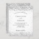 Um fundo branco na frente. Decorado com falso brilho prateado. Personalize e adicione seus nomes e detalhes da festa. Fundo: fundo de prata sujo e brilho.