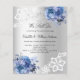Um convite à renovação de votos moderno e elegante. Um fundo com aspecto fino prateado decorado com flores azuis, rosas e rendas brancas. Personalize e adicione seus nomes e detalhes. 1 folha = 1 convite impresso de borda a borda.