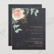 Fundo do quadro. Decorados com ouro-rosa e folhas de eucalipto cor-de-rosa-esbranquiçada, flores de rosa e cor-de-rosa-esbranquiçada, galhos, verde-verde e um cinzeiro de ouro falso. Personalize e adicione seus nomes e detalhes. Texto branco e ouro. 1 folha = 1 convite impresso de borda a borda.