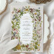 Celebre o início da sua história de amor com o nosso Convite de Casamento de Bliss Botânicas. A intrincada ilustração na frente do convite apresenta uma cornucopia de flora e fauna, com uma mistura harmoniosa de matizes pastéis e vibrantes que vão do rosa-pincel, verde-sábio, amarelo-buttera à lavanda macia, azul-céu e bege quente. A parte de trás do cartão complementa a frente com um padrão botânico rico e cheio, com borboletas delicadas fluindo entre uma variedade de flores florescentes e amoras amadurecidas, evocando um jardim em floração cheio. Este convite não é apenas um anúncio, é uma salvaguarda do encantamento da natureza.