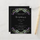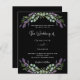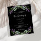 Um fundo preto decorado com flores lavandas e verde de eucalipto. Personalize e seus nomes e detalhes. 1 folha = 1 convite impresso de borda a borda.