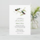 Convite de casamento moderno, elegante e simples com passarinho e folhagens.
