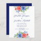 Esses convites para casamento elegantes e modernos patrióticos apresentam lindas flores aquáticas em tons vermelhos, brancos e azuis, fazer-os a escolha perfeita para o casamento de 4 de julho ou casamentos militares. A design é patriótica e floral, alcançando um equilíbrio perfeito entre os dois temas. Visite nossa coleção patriótica de casamento para convites patrióticos de casamento, favores de casamento e suprimentos de festas. COPYRIGHT © 2020 Judy Burrows, Black Dog Art - Todos Os Direitos Reservados. Convite de casamento Patriótico Azul Floral Azul