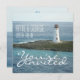 Convite de casamento personalizado New England Beach 1 - um romântico convite de casamento no tema costeiro da Nova Inglaterra com um farol branco.