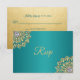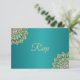 Cartões de resposta de casamento RSVP indianos elegantes e modernos em verde turquesa, azul e verde. A cor do fundo pode ser alterada. Bela flor Mandala com design dourado e diamante. Parte de trás tem folha dourada falsa. Modelos editáveis - adicione seu texto. Entre em contato com o designer para outras variações.