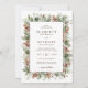Prepare o cenário para um casamento mágico de inverno com o nosso Convite de Casamento Pine de Inverno, apresentando um padrão coordenado no verso e um fundo verde rico. Este convite faz parte da "Suite de Casamento Elegante com Greenery de Pinecone de Inverno", projetada para cativar com greenery pintada à mão em aquarela e galhos de pinheiro. É a maneira perfeita de convidar os convidados com um toque de elegância de inverno e apelo estético contínuo.