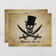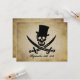 Um clássico Jolly Roger, com chapéu alto opcional, em um fundo com visual de grunge antigo e espaço para todos os detalhes do seu convite em linguagem pirata!
