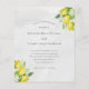 Os limões amarelos brilhantes e a folhagem verde escura fazem deste design de verão a escolha perfeita para o seu casamento. Esta é parte da nossa rubrica orçamental que ajuda a poupar dinheiro. Esteja ciente de que o documento é mais fino e não é da mesma qualidade que nossos convites padrão. Por favor, esteja ciente disso antes de fazer o pedido. A opção Papel semirroxo foi selecionada e é recomendada. Estes não vêm com um envelope, mas estão disponíveis para o comprar aqui. Limões amarelos brilhantes nas esquinas com fundo de estrelas douradas. Isto tem um fundo de lavagem de cor d'água de cinza. As fontes foram selecionadas para parecerem na moda, mas fáceis de ler, o que seus convidados apreciarão. Personalize com os nomes e os detalhes do casamento. Se tiver perguntas, entre em contato com o designer que pode ajudá-lo.