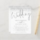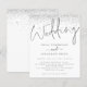 Convite de Casamento com Brilho Prateado em Letra Moderna. Uma alternativa mais acessível com tamanho 4,5” x 5,6”. Disponível em PAPEL CARTÃO 110 lb SEMI-BRILHO, que é a opção padrão (mais grosso para convites), OU PAPEL 80 lb COM ACABAMENTO EM SEDA (ideal para inclusões). Envelopes são opcionais e têm um tamanho ligeiramente maior que o cartão. Casamento está em letra estilosa definida na parte superior e tipografia elegante abaixo com seus detalhes. Uma borda prateada com brilho falso percorre a parte superior. Personalize facilmente o restante do texto com seus próprios detalhes. Você também pode alterar as cores do texto e do fundo através da opção "personalizar mais" se desejar.