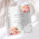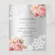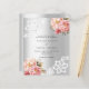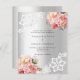 Para um casamento elegante e romântico. Um fundo de aspecto fino prateado decorado com flores, rosas e rendas de ouro rosa e rosa. Personalize e adicione seus nomes e detalhes. 1 folha = 1 convite impresso de borda a borda.