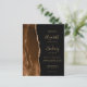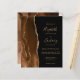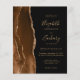 A borda esquerda deste convite de casamento moderno e elegante apresenta uma borda de ágata com efeito de aquarela marrom mocha, decorada com brilho dourado falso. O texto personalizável combina caligrafia dourada, fontes copperplate e itálico em um fundo preto. O verso apresenta um design correspondente de ágata marrom mocha e dourado.