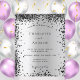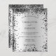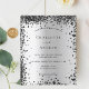 Um convite de casamento moderno e elegante. Um fundo com aspecto fino de prata decorado com confete preto. Personalize e adicione seus nomes e detalhes do casamento. Letras pretas coloridas.