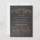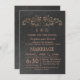 Um design de cartão de casamento muito elegante, com folha de ouro falso rosa, floresce uma ilustração decorativa, num fundo texturizado a preto. Use a ferramenta Personalizar para adicionar suas informações. Para mais, visite minha Coleção de Casamentos de Sujeira de Foil Dourada.