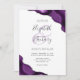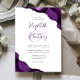 Um desenho de ágata aquarela roxa aparado com brilho prateado falso aparece em dois cantos deste design elegante. Personalize-o com os nomes do casal em escrita à mão em cinza carvão sobre um grande e comercial roxo claro. Adicione os detalhes do casamento em fontes copperplate e itálico em um fundo branco. O verso apresenta um desenho de ágata roxa e prateada correspondente.