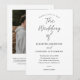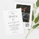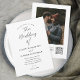 Convite de Casamento com QR code Preto e Branco com Letra Moderna. O verso tem uma foto (que você pode remover) e detalhes adicionais com QR code RSVP. Clique no botão de edição para personalizar este design de acordo com as suas necessidades.