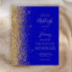 A borda esquerda deste elegante convite de casamento moderno apresenta uma borda falsa de ouro. O texto personalizável combina manuscrito dourado, copperplate e fontes itálicas em um fundo azul real. O verso apresenta um design azul real e dourado.