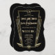 Convite de casamento Real Dourado de Deco Monograma. Único Glam, design de cartão Vintage com forma falsa de arte dourada com uma crista para suas iniciais, falso ouro Fleur-de-lis como uma herança real, um Excelente Rajando 1920 Gatsby, velho estilo Hollywood, fontes maravilhosas sobre um fundo negro. Use a ferramenta Personalizar para adicionar suas informações. Para mais, visite, por favor, minha Coleção Real de Casamentos de Arte Dourada Monograma.