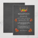 Um design de decoração rústica boho, apresentando antleres de veado decorados com folhagem de outono em um fundo de quadro-negro. Use a ferramenta Personalizar para adicionar suas informações. Para mais papelaria de casamento, visite, por favor, a coleção Eventos de Todas as Estações com Antleres Rústicos Embelezados.