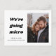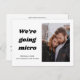 Um convite de casamento moderno e minimalista para que seus convidados originais saibam que você decidiu diminuir sua lista de convidados devido à pandemia. Escrito em negrito na tipografia é a palavra "estamos indo micro. Personalize seus detalhes de casamento no fundo em tipografia de script limpa e ousada.